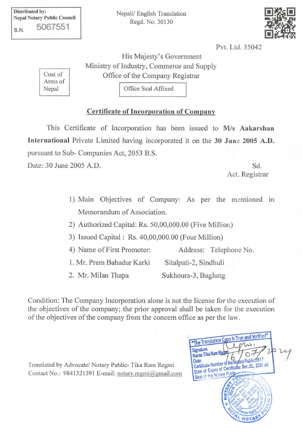 Registration Certificate